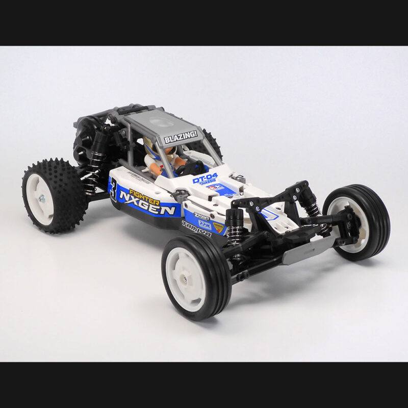 The Tamiya Fighter NXGEN (DT-04) is a 1/10 scale R/C model assembly kit inspired by full-size single-seater racing buggies. Built on Tamiyaās next-generation DT-04 2WD rear-wheel-drive platform, it blends straightforward assembly with lively off-road performance and a broad range of setup options.