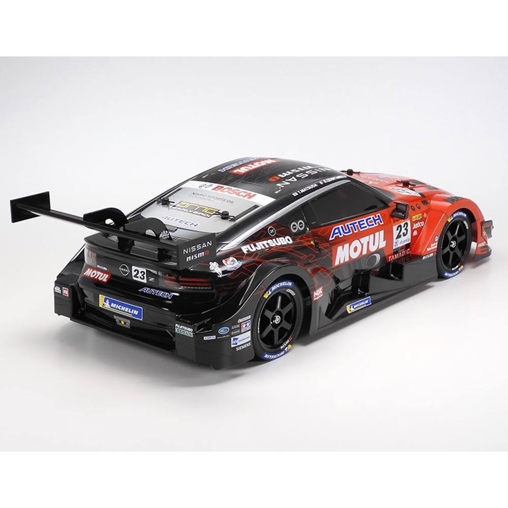 Celebrate modern Super GT styling with the Tamiya Motul Autech Z TT-02 (47503). This 1/10 scale R/C assembly kit recreates NISMOās 2023 Motul Autech Z, a race car derived from the Nissan Z and known for its opening-round victory at Okayama. The detailed polycarbonate body sits on Tamiyaās adaptable TT-02 shaft-driven 4WD chassis for balanced handling and straightforward maintenance.