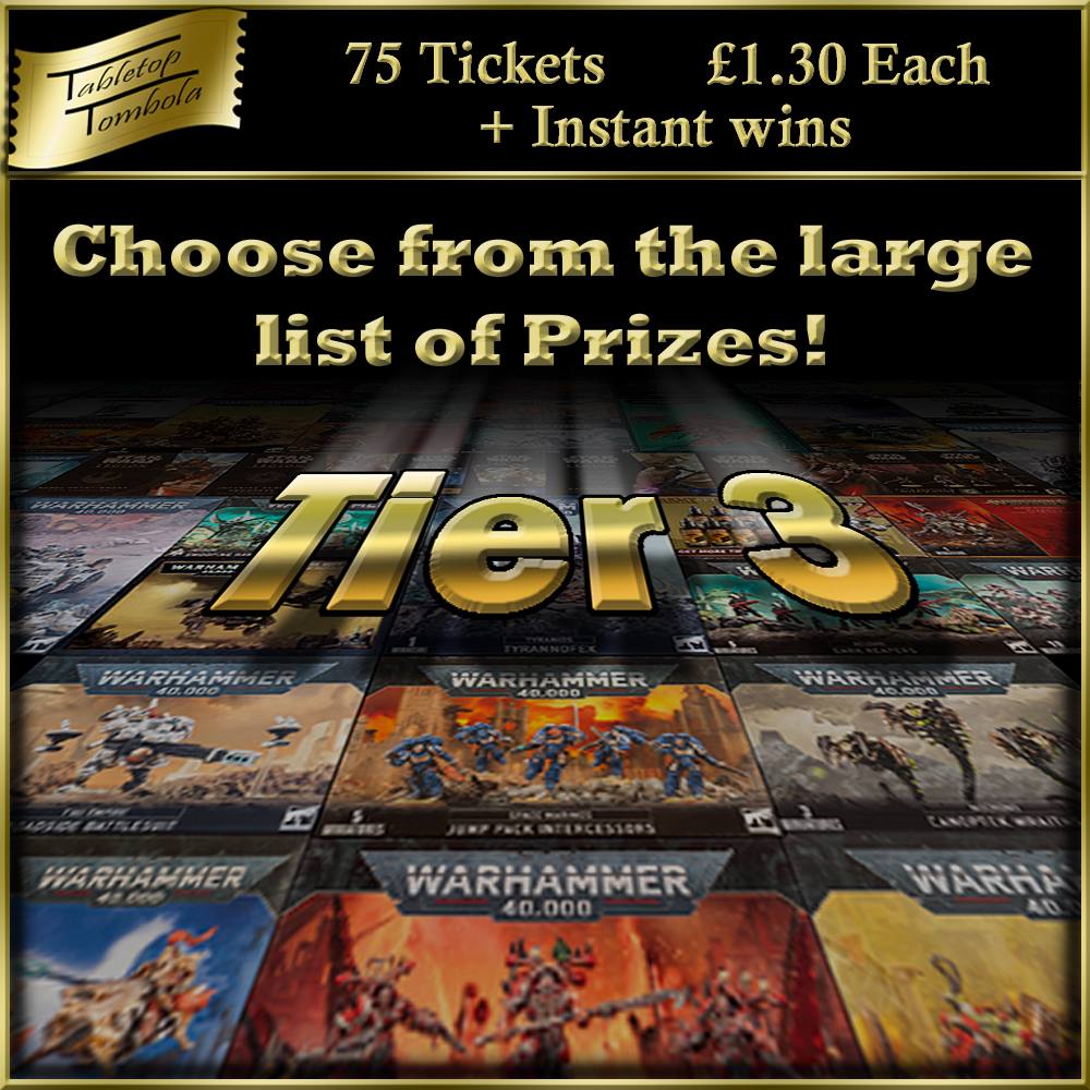 Wargames raffle competition. Win your choice of Tier 3 Prize