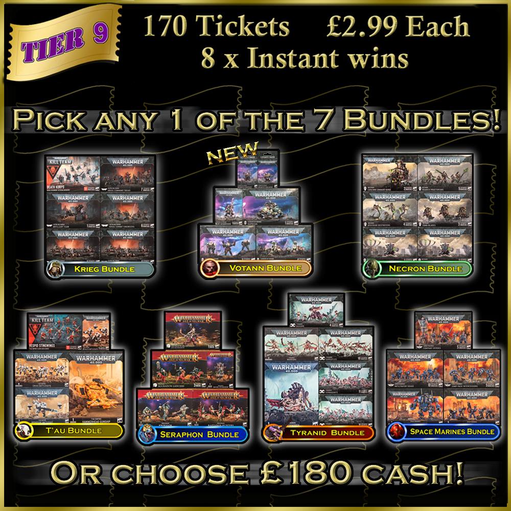 Tabletop Tombola. Wargame Competitions. The Choice is Yours. Tier 9 Army Bundles. Choose from Krieg, Tyranid, Tau and Seraphon or cash alternative